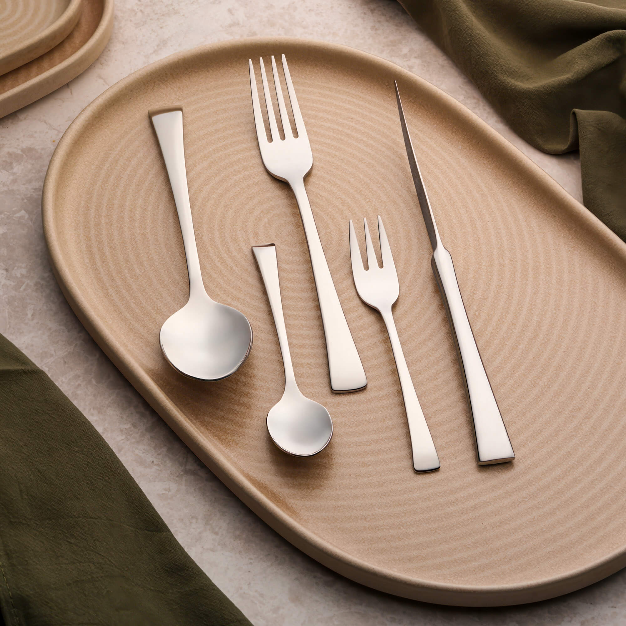 Príbor Delta zaujme od prvého momentu. Moderný dizajn, priame a rovné línie, detaily dotiahnuté do víťazného konca sa prejavia v tom, ako sadne do ruky. Eleganciu dotvára "Stand Up" nôž, ktorý Delte dodá neprehliadnuteľnosť.